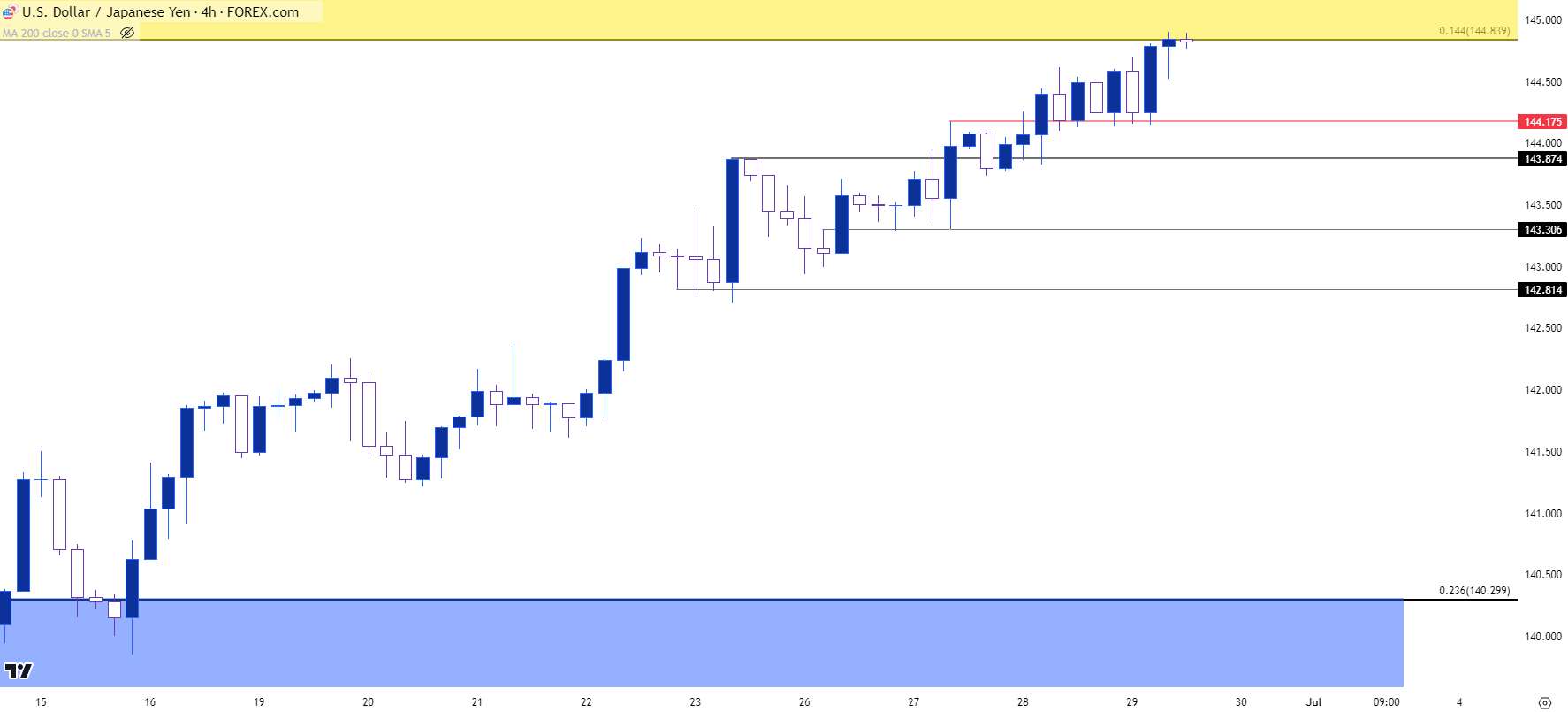 - 日元疲软继续助推美元,该货币对现在接近145的关键点位,这是去年上涨期间的重要点位,多头最终测试150之前在此处停滞了大约一个月。150是财务省主动干预的点位,帮助该货币对去年在此封顶。